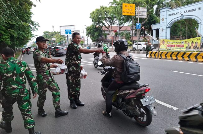 Koramil 02/Sawah Besar Bagikan Takjil kepada Warga dan Pengguna Jalan Jelang Buka Puasa