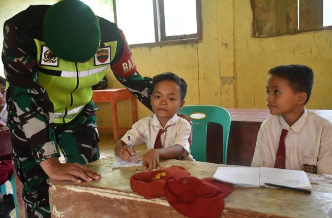 Indosiber.id | NIAS – Wajah ceria kembali menghiasi ruang kelas SDN 078481 di Nias setelah para Babinsa Sahabat Anak hadir sebagai tenaga pengajar bagi mereka. Kehadiran para Babinsa ini menjadi penyemangat bagi anak-anak untuk kembali menuntut ilmu demi masa depan, setelah lebih dari satu bulan mereka tidak bisa belajar akibat ketiadaan tenaga pendidik di sekolah mereka.