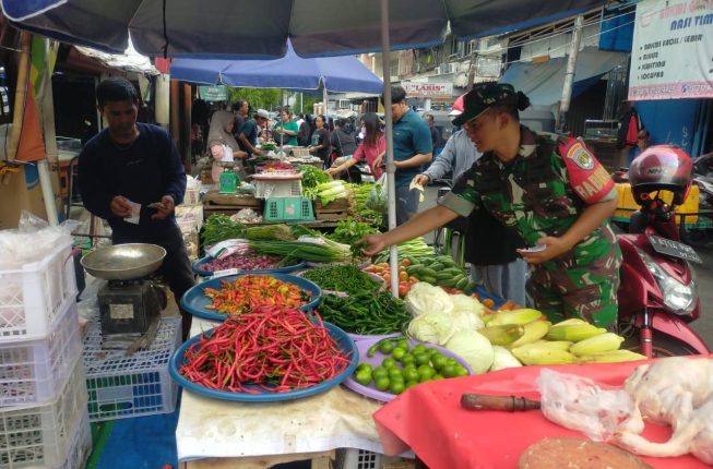 “Kami berinteraksi langsung bertanya pada pedagang dan pembeli terkait harga sembako yang ada di pasar tersebut. Satu persatu harga sembako kami tanyakan. Meskipun ada beberapa harga sembako yang naik, namun masih terjangkau oleh masyarakat dan tidak ada yang protes.”tutur Serka Suharno.