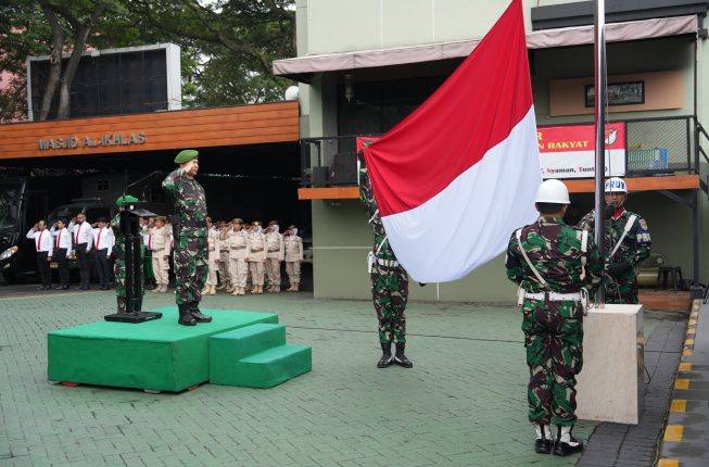 Indosiber.id – Bentuk penghormatan dan penghargaan kepada Sang Merah putih, Korem 052/Wkr menggelar Upacara Bendera 17-an. Dalam kegiatan tersebut Ws. Kasiops Kasrem 052/Wkr, Letkol Arm Roni Hermawan, S.H., M.M., bertidak selaku Inspektur Upacara, bertempat di lapangan Makorem Jln Beulevard Diponegoro no 108 Kelapa Dua Kabupaten Tangerang. Senin (17/3/2025)
